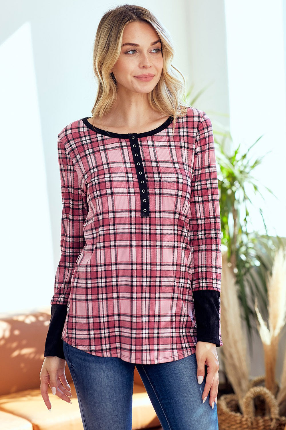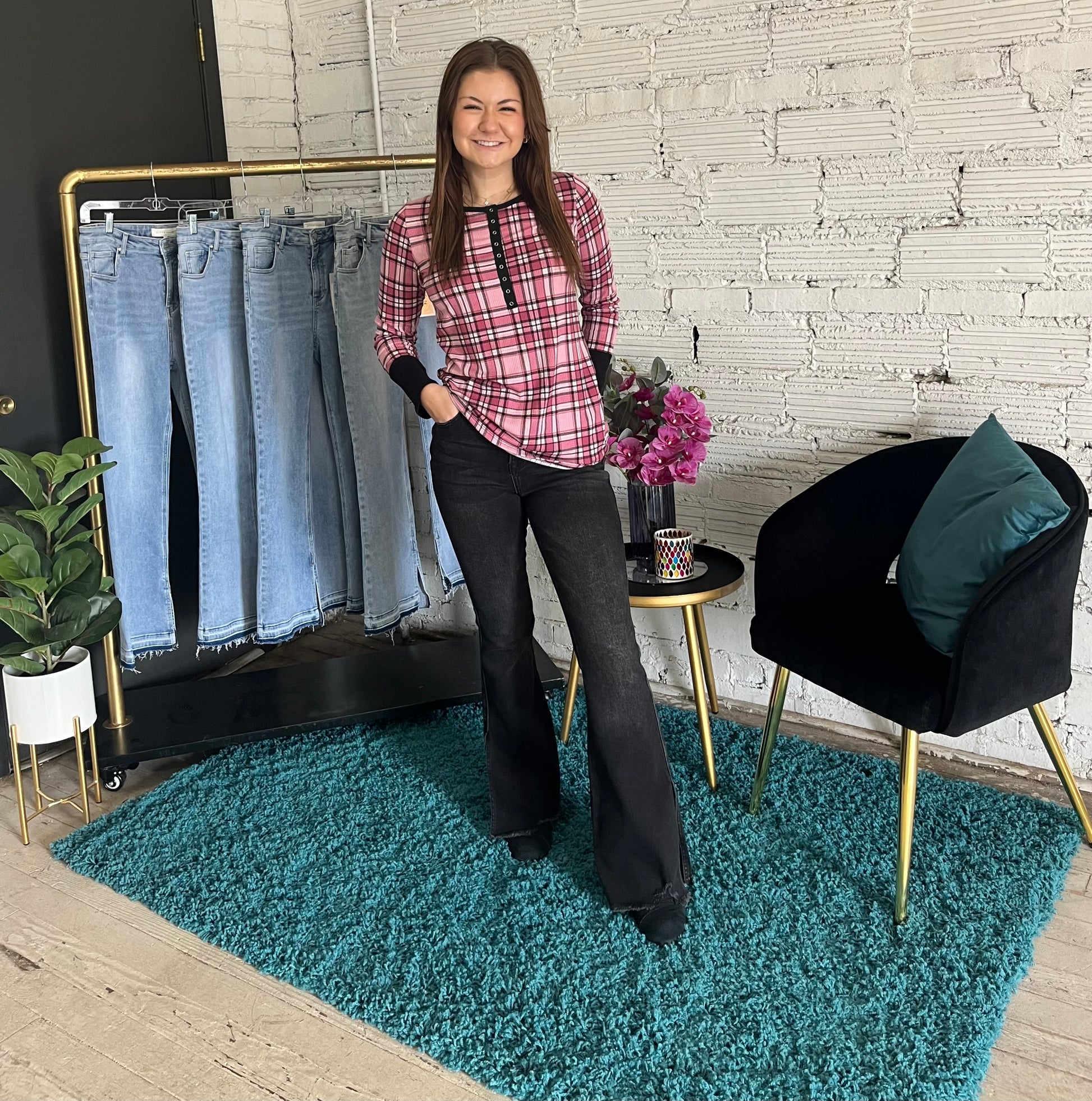 This thermal magenta plaid top features snap button detail and hands out all of the "check me out" vibes!